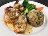 Served with mashed potatoes and sautéed seasonal vegetables. topped with lobster cream sauce